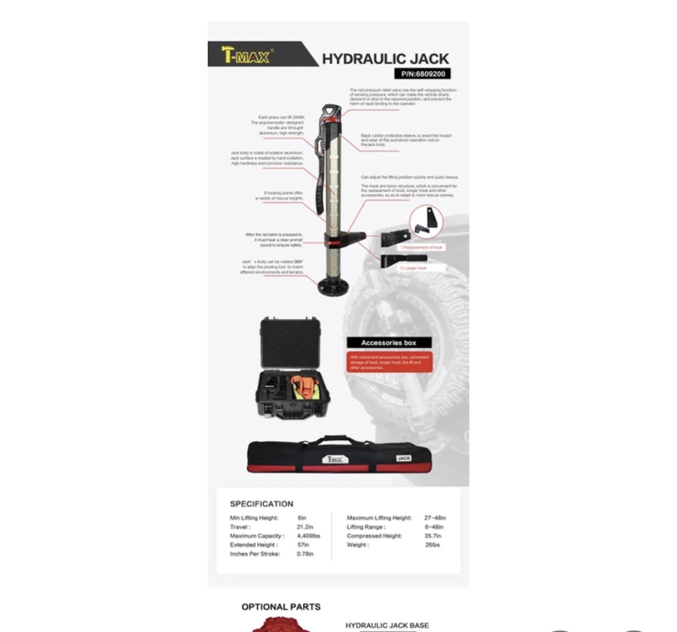 جک هیدرولیک تیمکس (T‑Max Hydraulic Jack) یک جک قدرتمند و قابلاعتماد برای بلند کردن خودرو در شرایط جادهای و آفرود است. این جک با بهرهگیری از سیلندر هیدرولیک تقویتشده و پیستون مقاوم توانایی بلند کردن خودروهای SUV، پیکاپ و خودروهای دو دیفرانسیل را دارد.